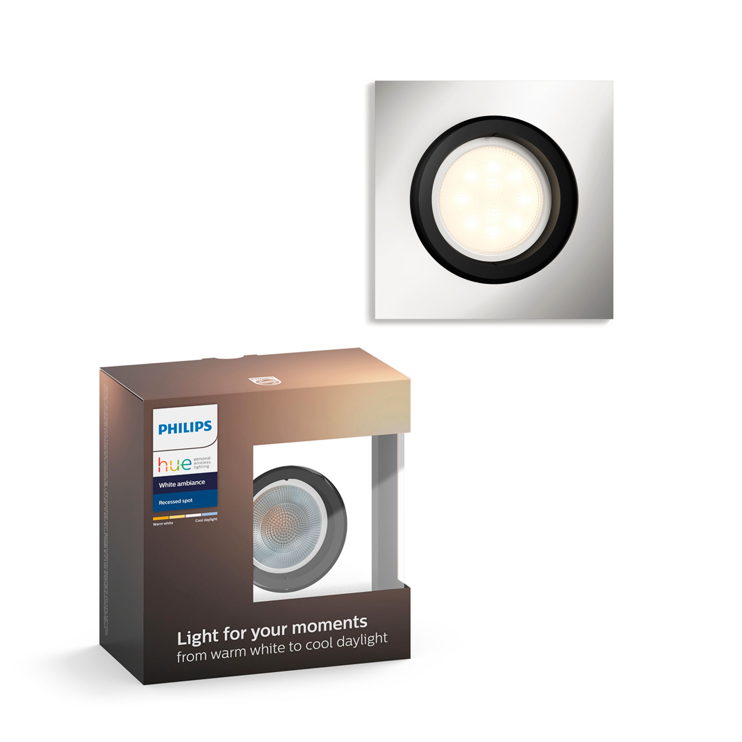 Rozšiřte svůj systém Philips Hue o další bílá bodová světla a užívejte si teplé až studené bílé světlo. Chcete-li ovládat světla pomocí chytrého zařízení, potřebujete můstek Philips Hue, který je dodáván v rámci startovní sady. Připojte bodové světlo k můstku a ovládejte ho podle potřeby.