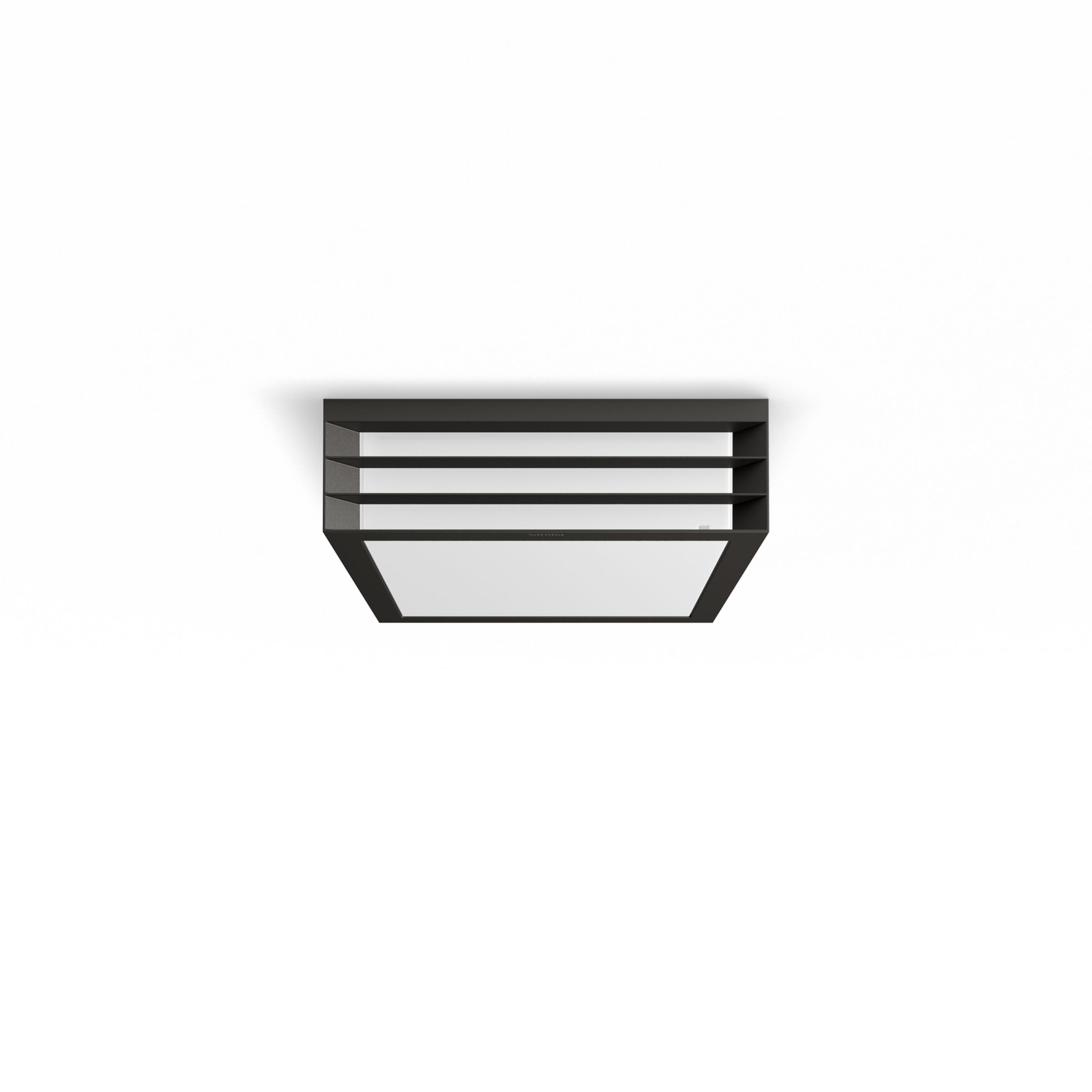 Philips Moonshine udendørs LED væglanterne i antracitgrå er fremstillet i holdbart støbt aluminium. Med dens minimalistiske skærm spredes et diffust frontalt stærkt lys til vægge og lofter.