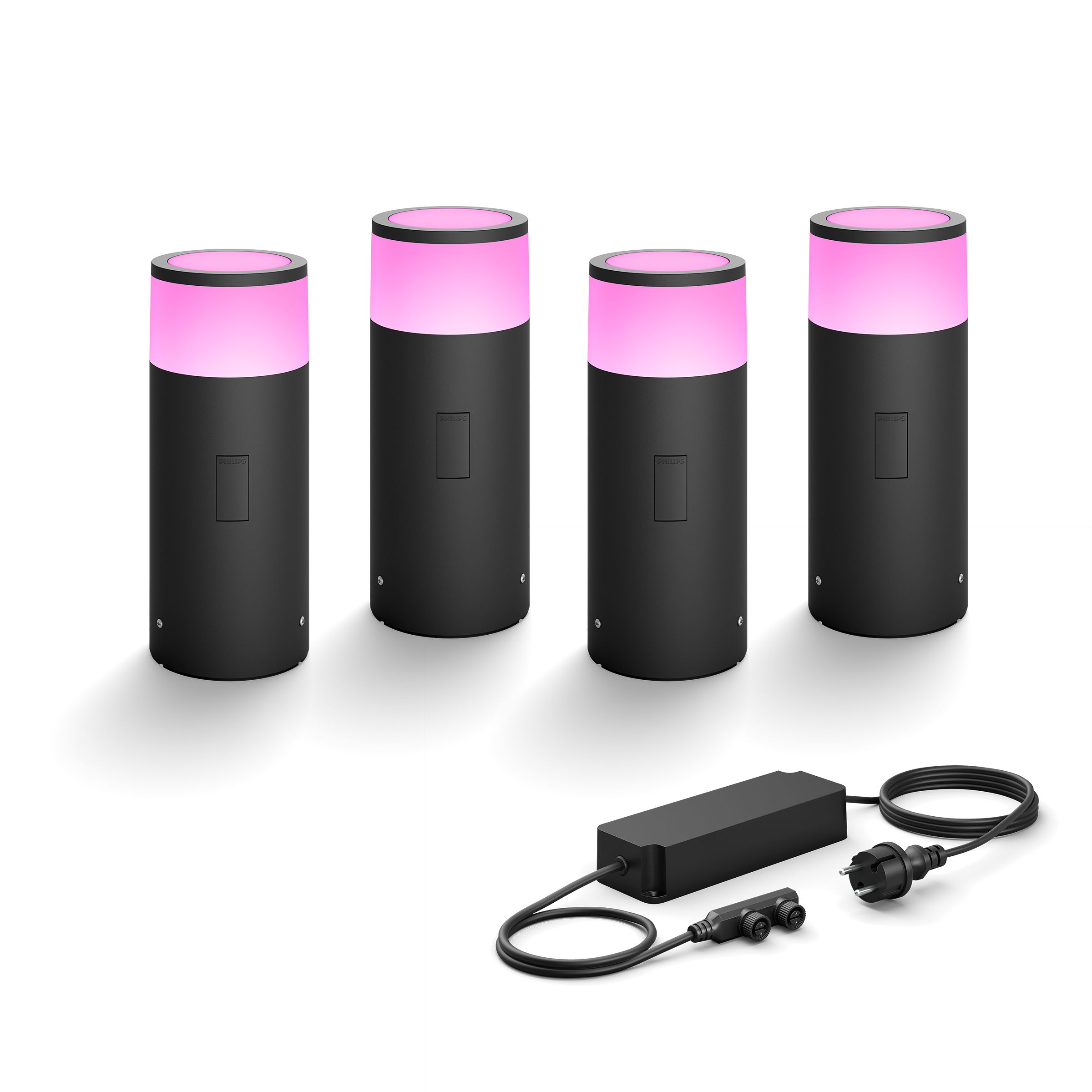 Denne Calla bundle er klar til plug & play. Den indeholder fire Calla piedestaler og en 100W strømforsyning. Du skal blot sætte stikket i og nyde de 16 millioner farver, der er til rådighed for at fremhæve skønheden i din have eller bruge den mere funktionelt til stibelysning.