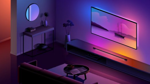Stelle ihn unter den Fernseher. Montiere ihn darüber. Wo auch immer er platziert ist, sorgt er mit seiner Kombination brillanter, farbenfroher Beleuchtungsoptionen für einzigartige Unterhaltungserlebnisse.