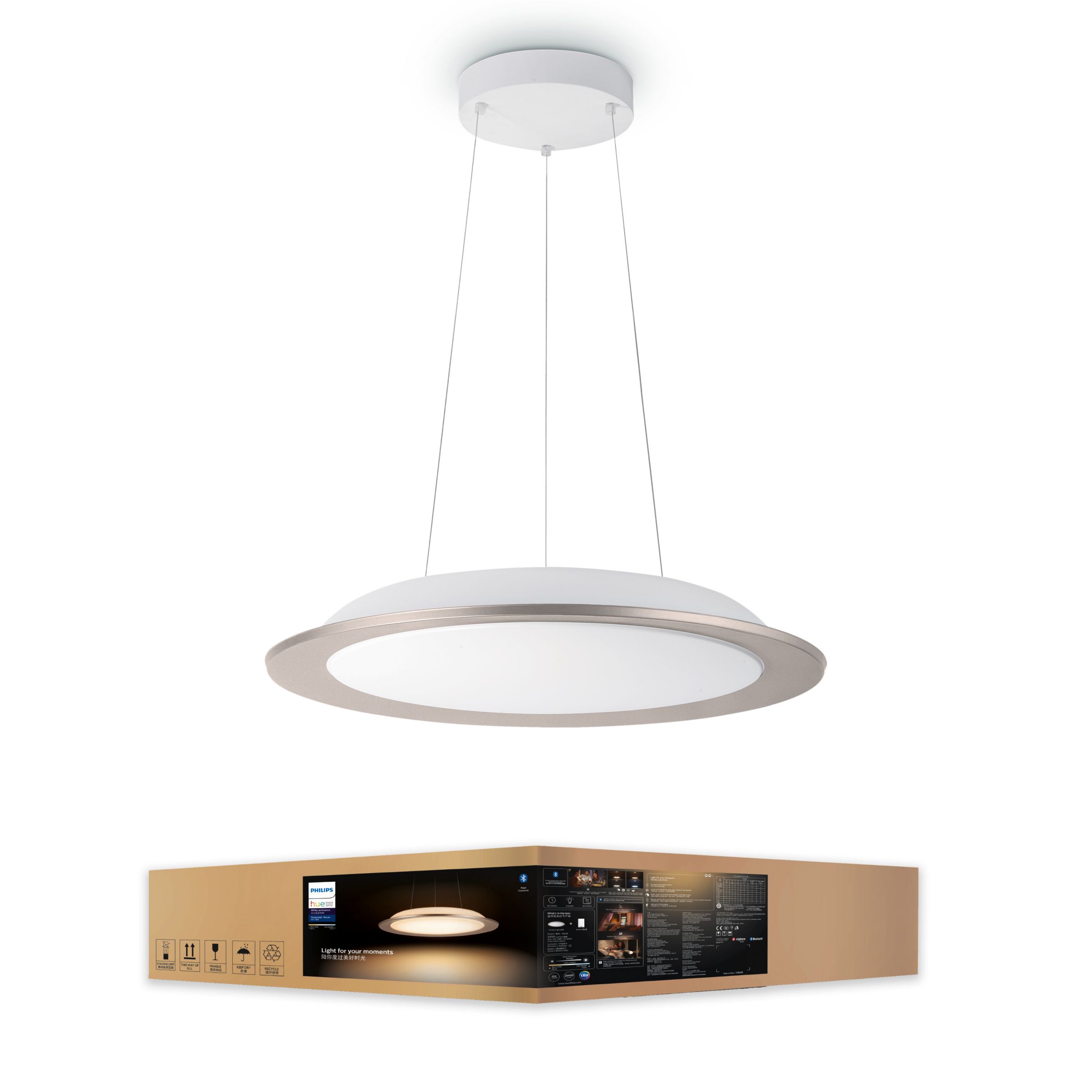 Get warm-to-cool white light for any room with the Philips Hue White ambiance Muscari pendant light. The circular design offers a backlight that adds to its truly unique look. Control instantly with Bluetooth or unlock more smart lighting features with a Hue Bridge.