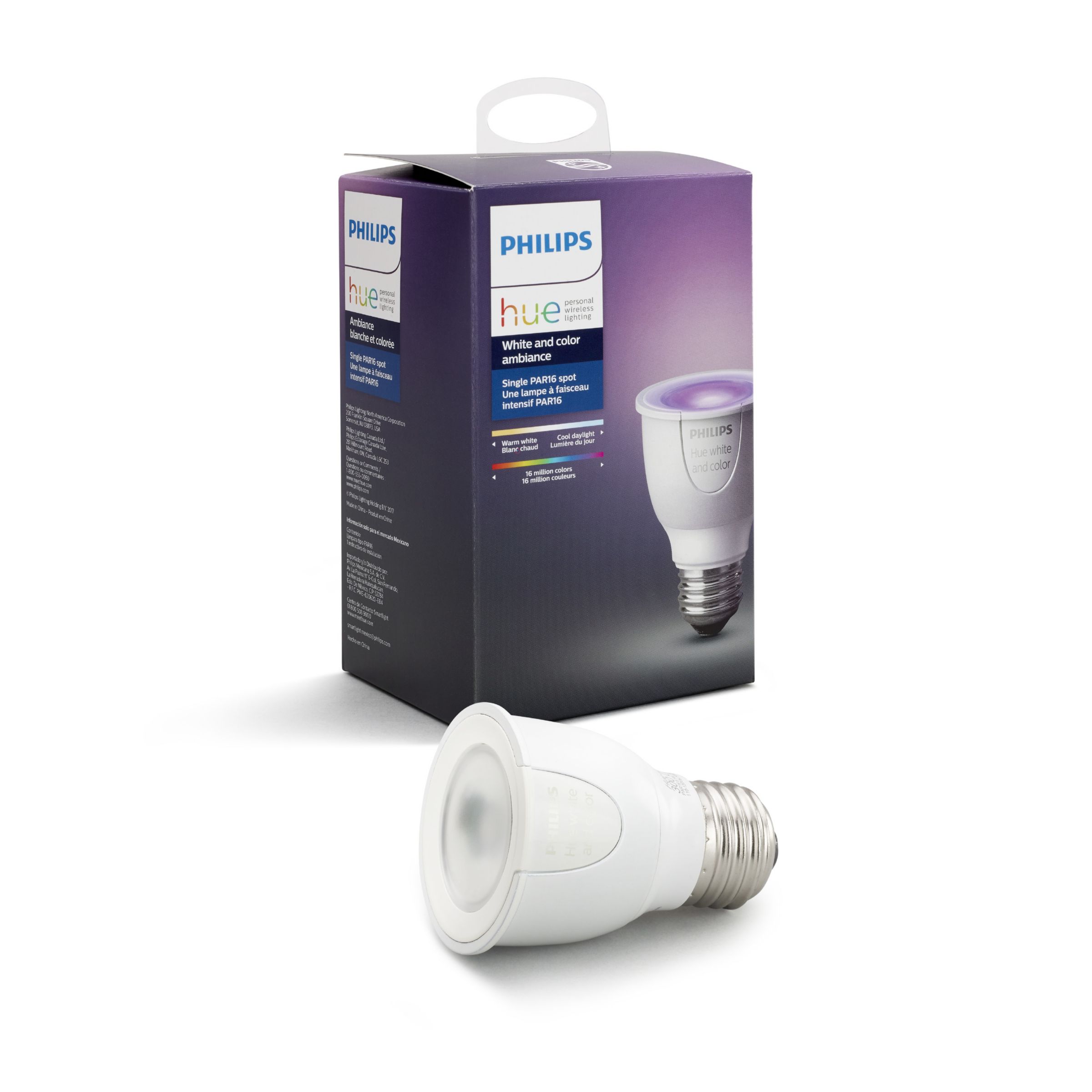 Set the scene for your party or transform your living room into a cinema for movie night. This spotlight bulb offers 16 million colors of light. Connect to the Hue Bridge to unlock the full smart lighting control and features.