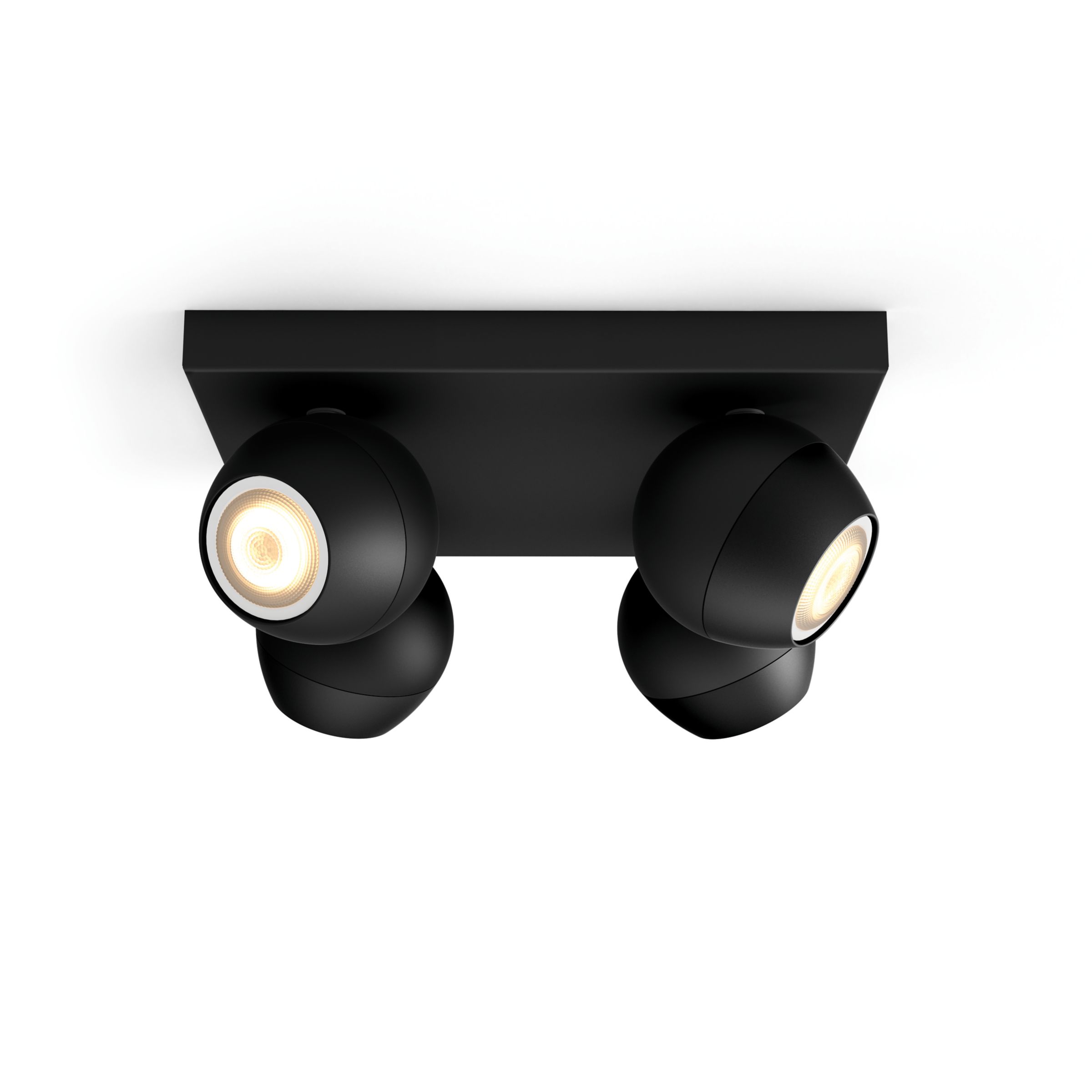 With the Philips Hue White ambiance Buckram spot light in black, you get four points of light to brighten the room. Adjust each spot individually to highlight the room and get instant control with the included Hue dimmer switch or Bluetooth. Connect to a Hue Bridge for more smart light features.