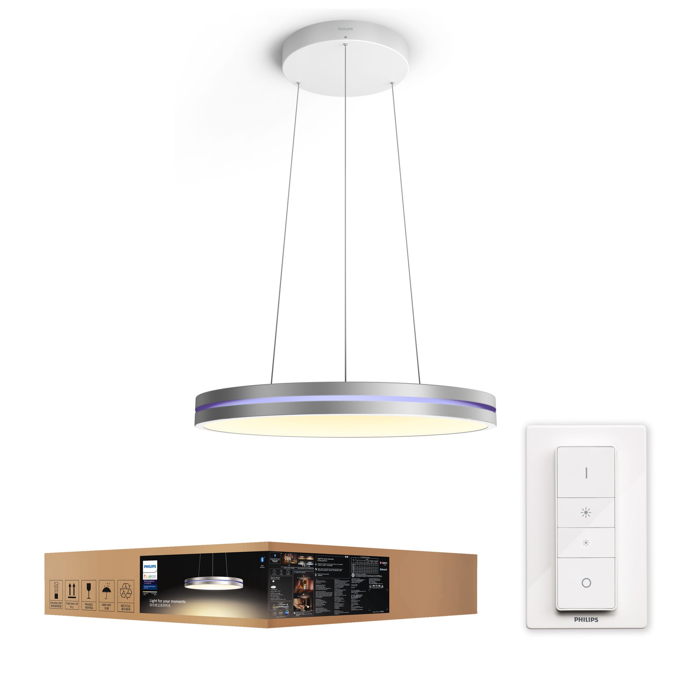 With its unique, colorful backlight, the Philips Hue White ambiance Semeru pendant light offers warm-to-cool white light for any moment of the day. Use the included Hue dimmer switch or Bluetooth for instant control or add a Hue Bridge to unlock the full suite of smart lighting features.