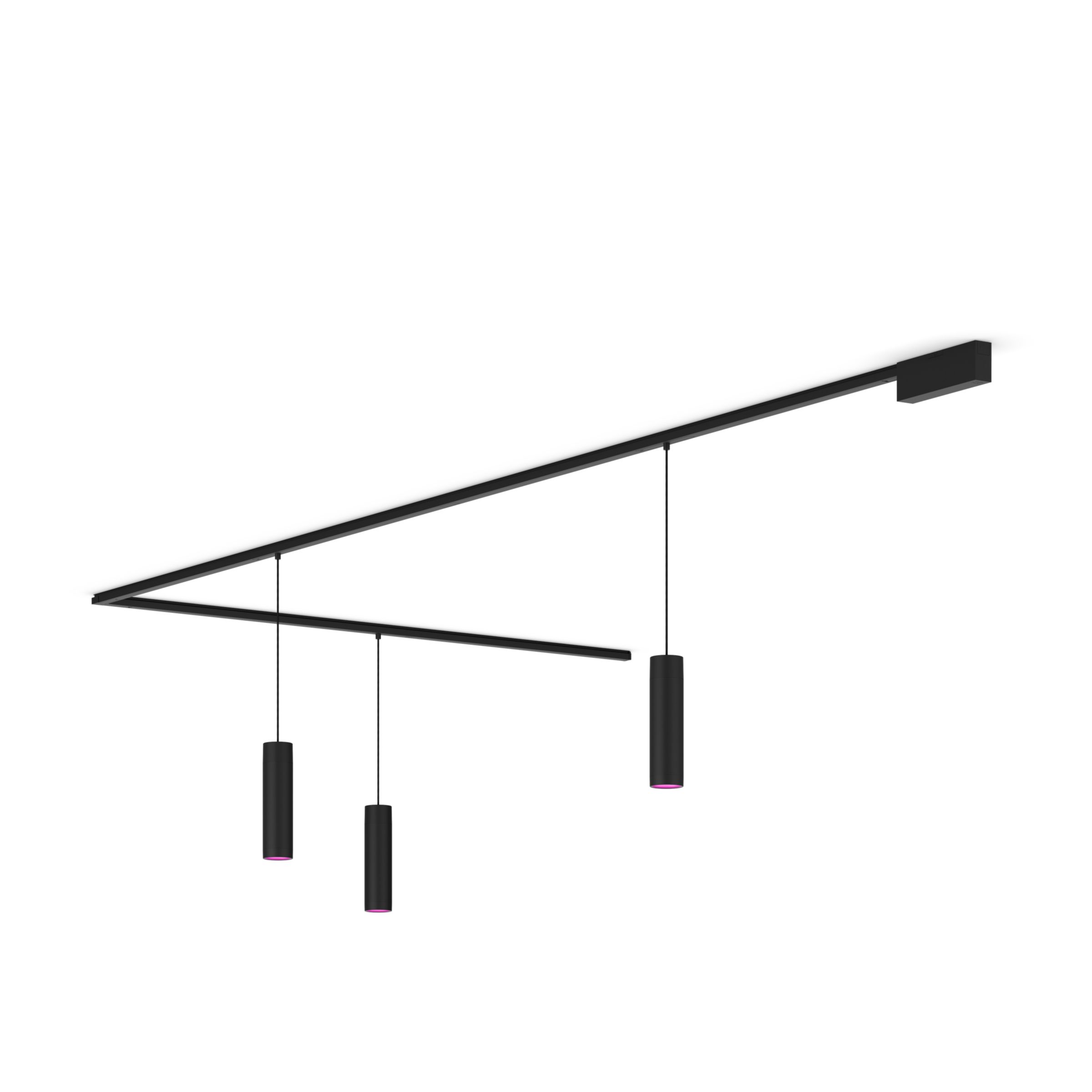 These long, slender pendant lights in black are perfect for hanging over a dining room table. Just click them into Perifo rails and direct their colorful light downward. Only for Perifo track lighting.