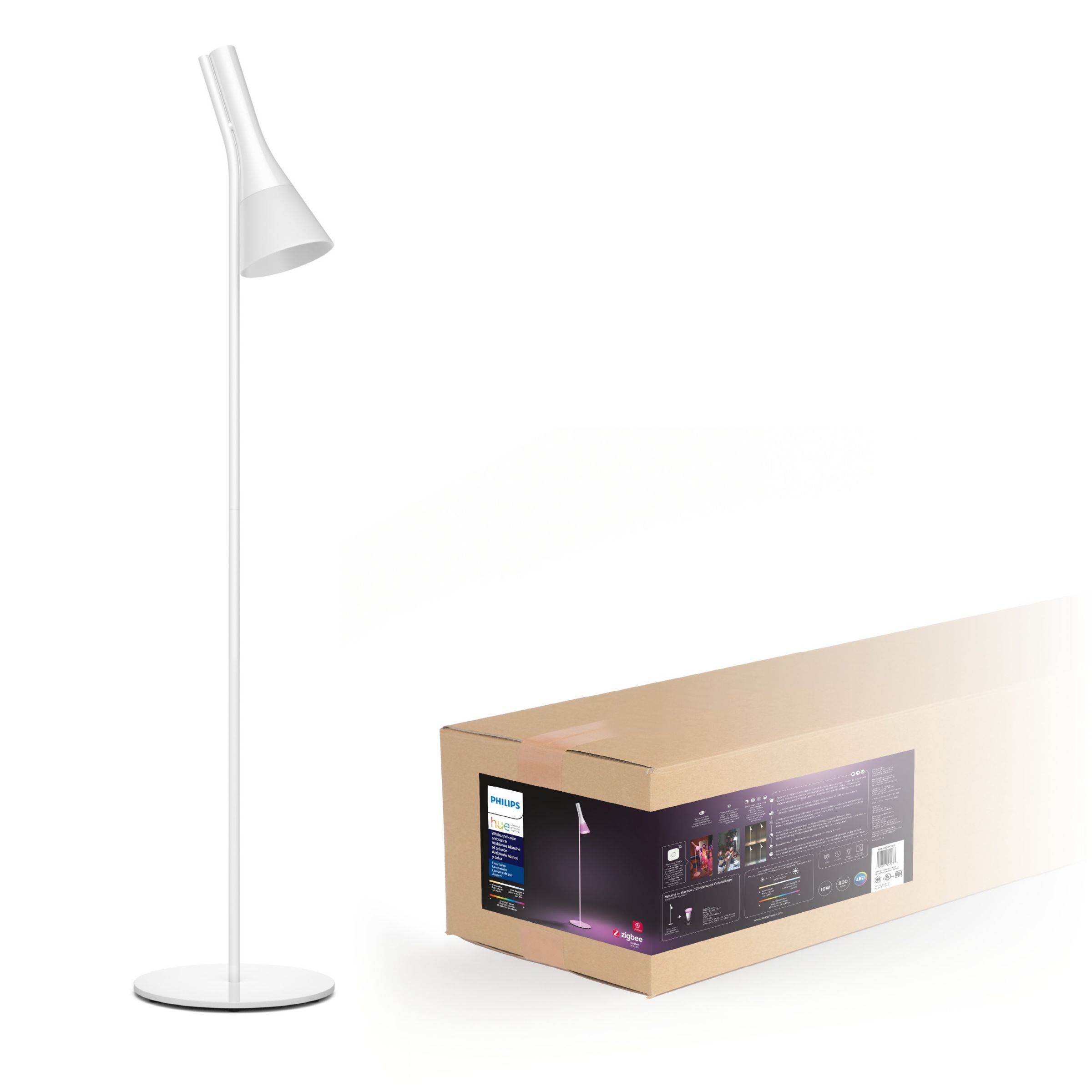 Connect the Philips Hue Ascend floor lamp to your Philips Hue system and enjoy scene-setting mood lighting and warm white task lighting. Designed to direct the light where you need it most.