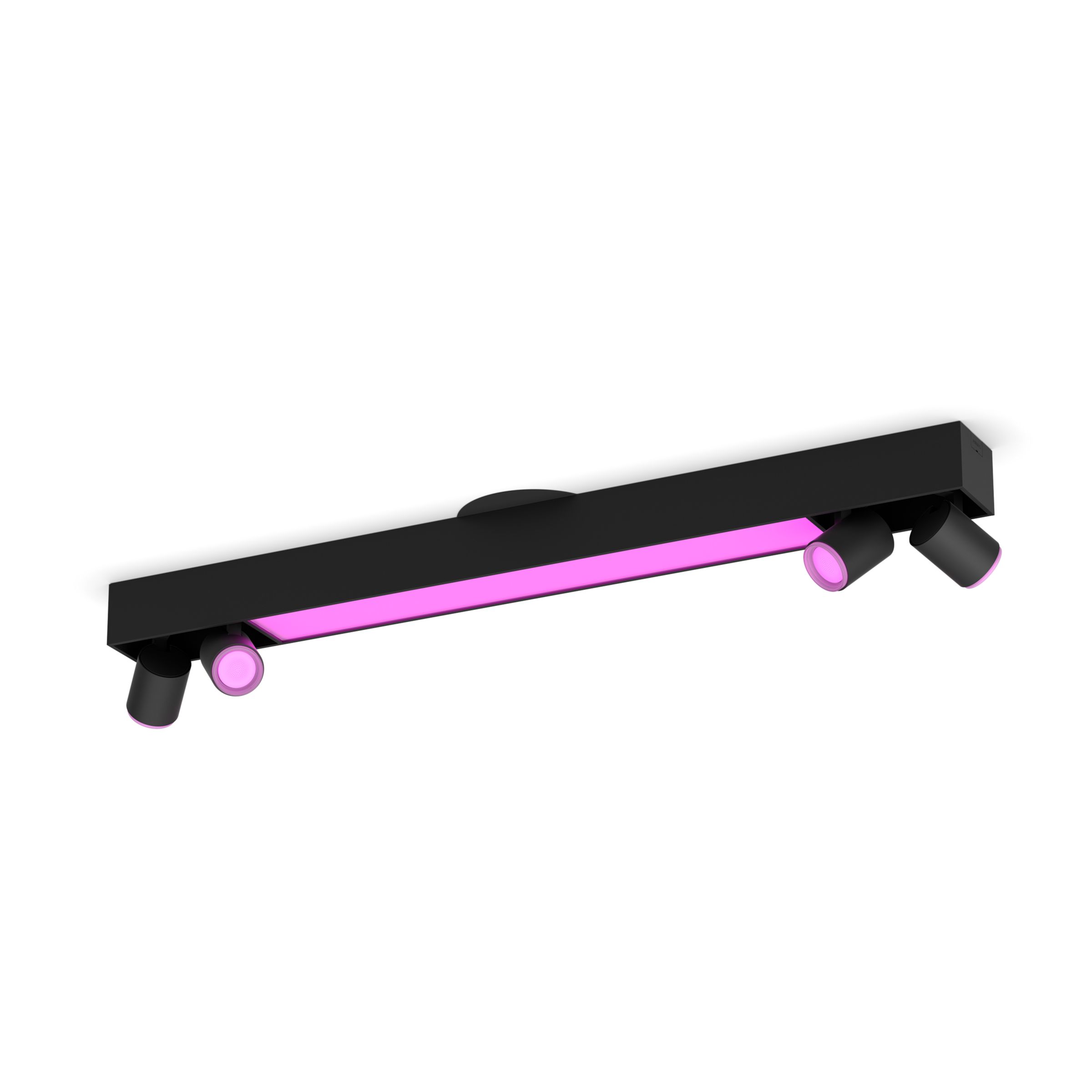 Get both functional and mood lighting in a single fixture. The black Centris has a fixed ceiling light and four spotlights that can be angled individually. Set each light in the fixture to any of millions of colors for a truly unique look.