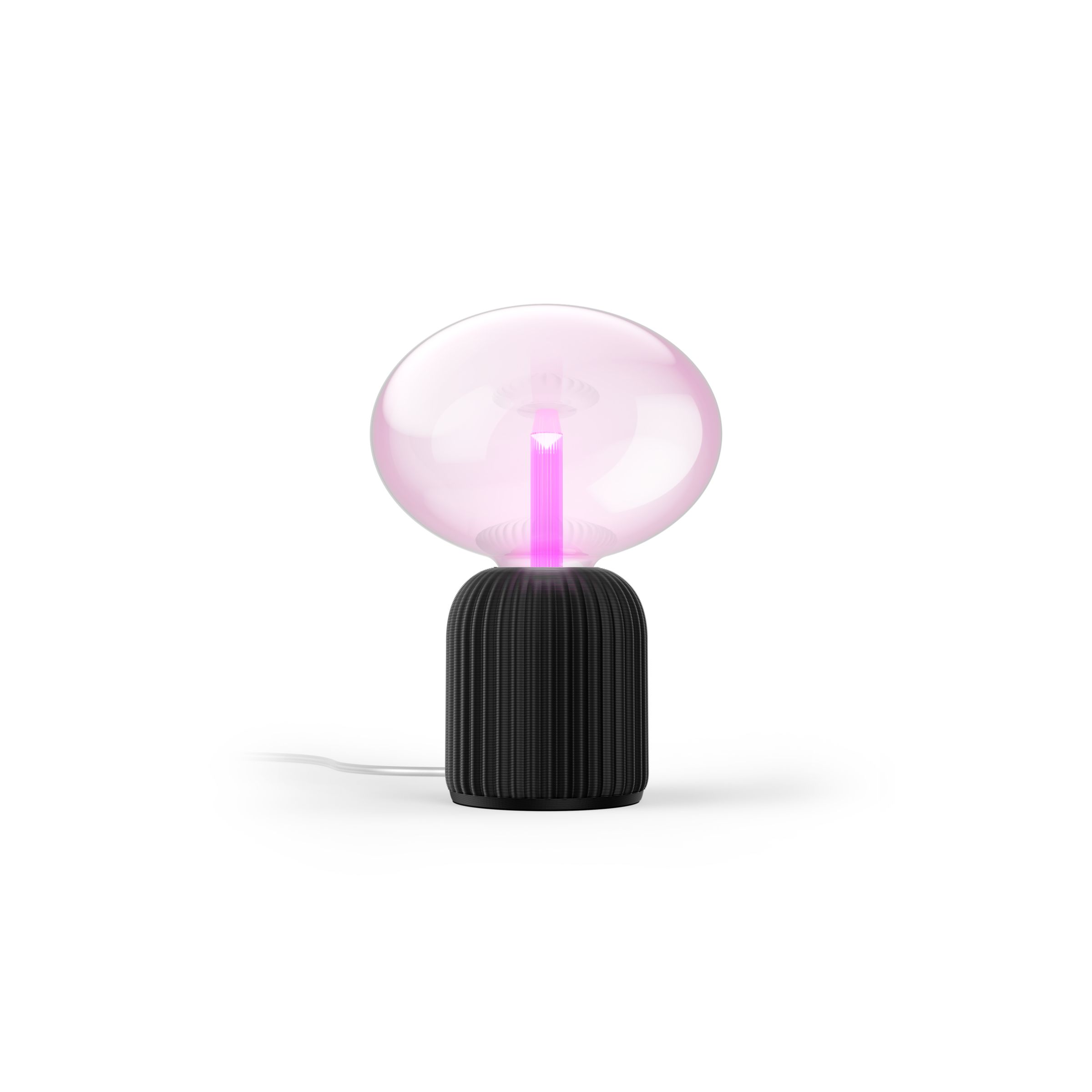 Specially made for Lightguide bulbs, this table lamp has been 3D-printed with a unique corrugated texture and glossy black finish.