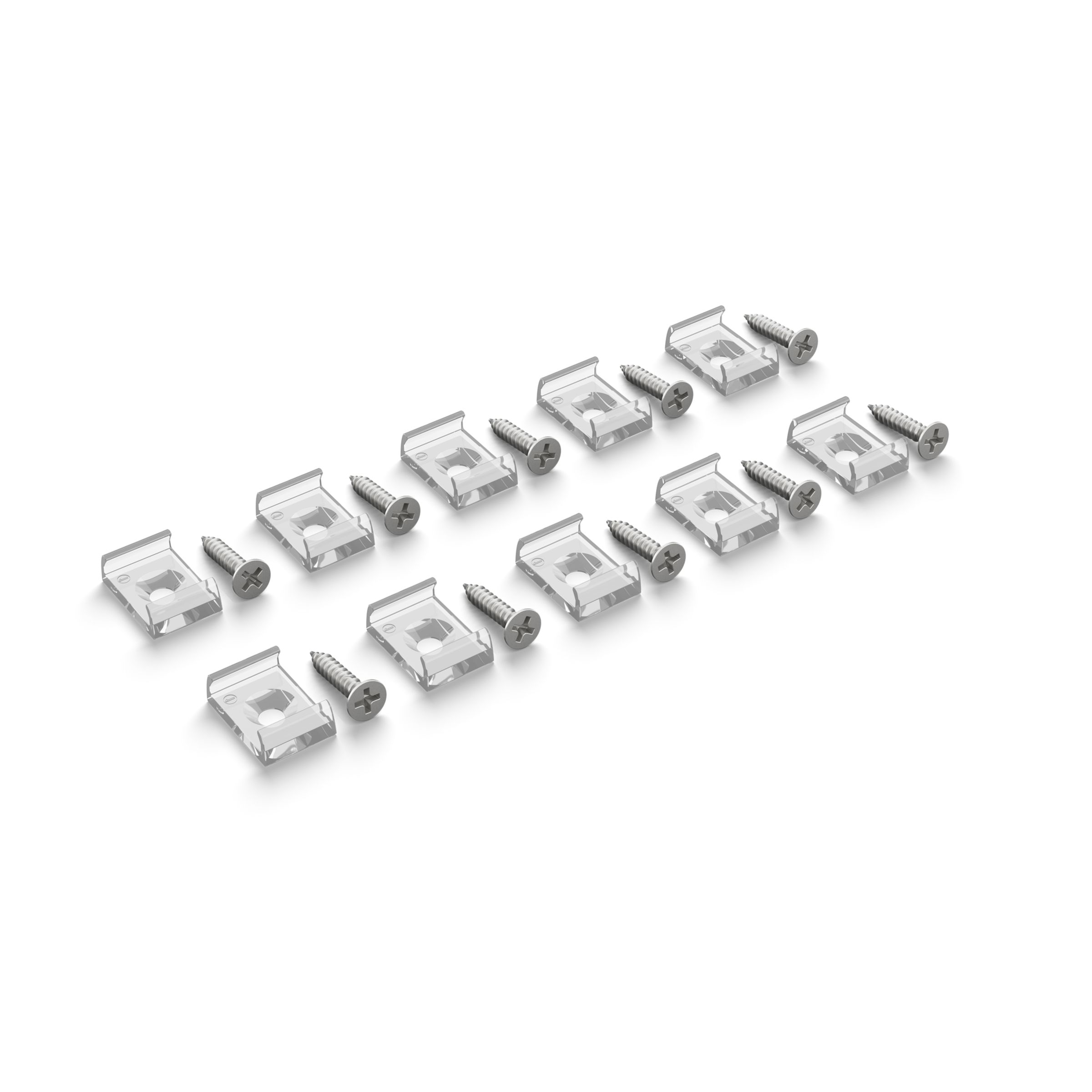 Easily install or re-install your Hue Flux and Flux ultra-bright strip lights on any surface inside the home with these specially-designed mounting brackets. Screws and adhesive tape are included for easy under-cabinet and textured wall mounting, and long installation support. Transparent design ensures uninterrupted light consistency and quality.