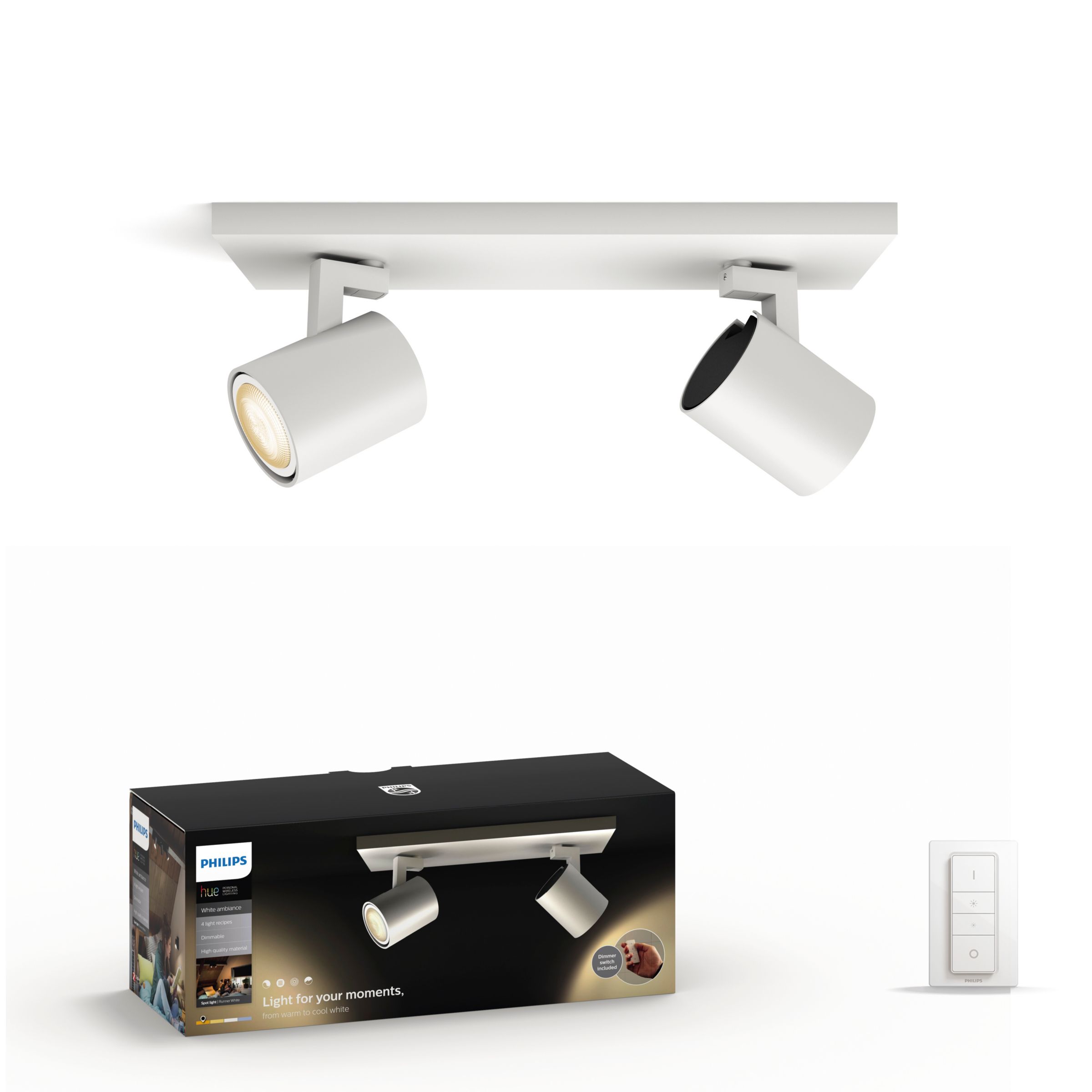 Avec le spot Runner Philips hue White ambiance intégré à votre système Philips hue, vous bénéficiez d'une lumière blanche naturelle qui vous aidera à vous réveiller, à vous sentir énergisé, à vous concentrer, à lire et à vous détendre. Un spot de haute qualité, robuste et conçu avec le souci des détails.