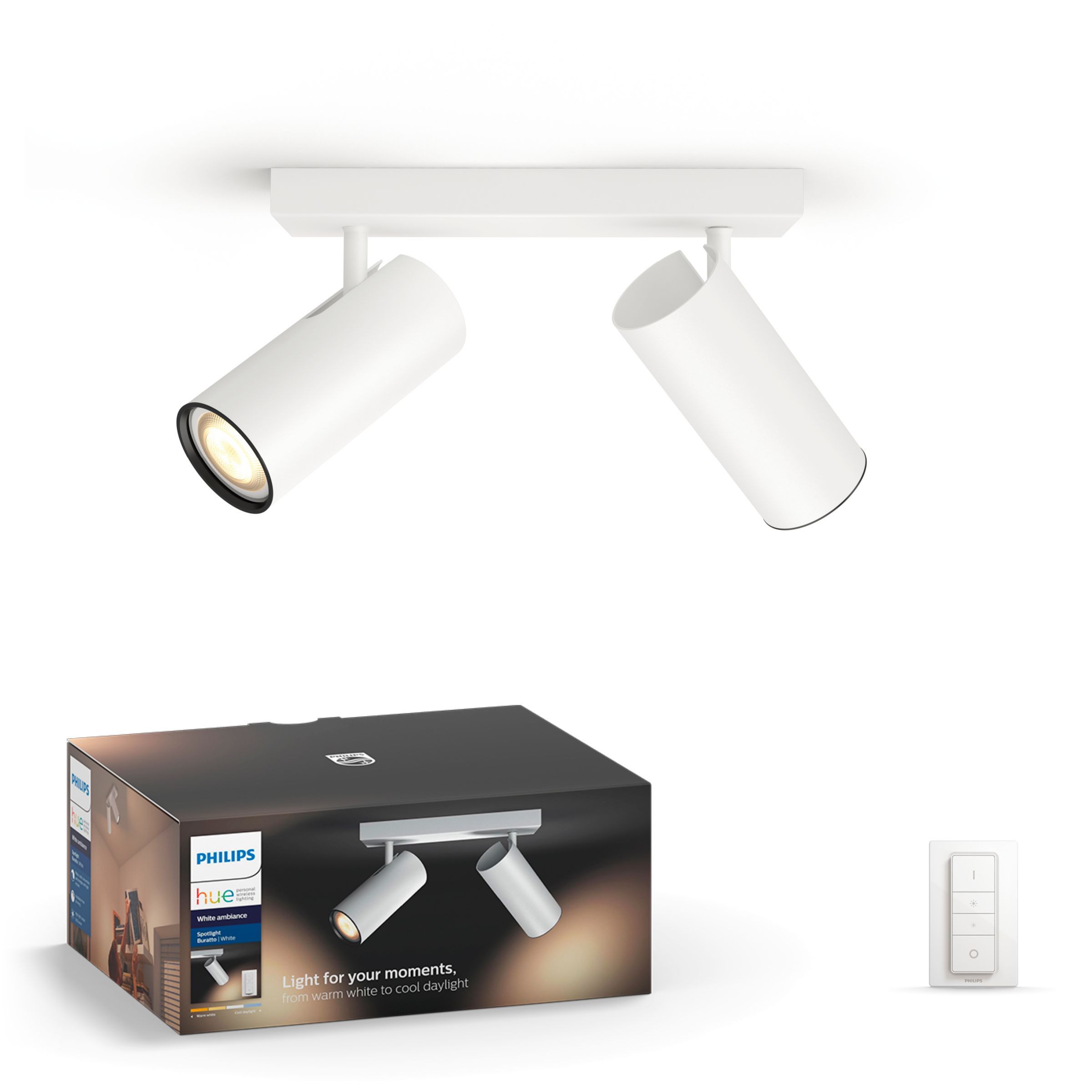 I faretti Philips Hue White ambiance Buratto vengono forniti con un telecomando dimmer wireless e una lampadina LED White ambiance GU10 che ti consente di rilassarti, leggere e ricaricarti di energia. Scegli una luce bianca naturale che si adatta alla tua routine giornaliera.