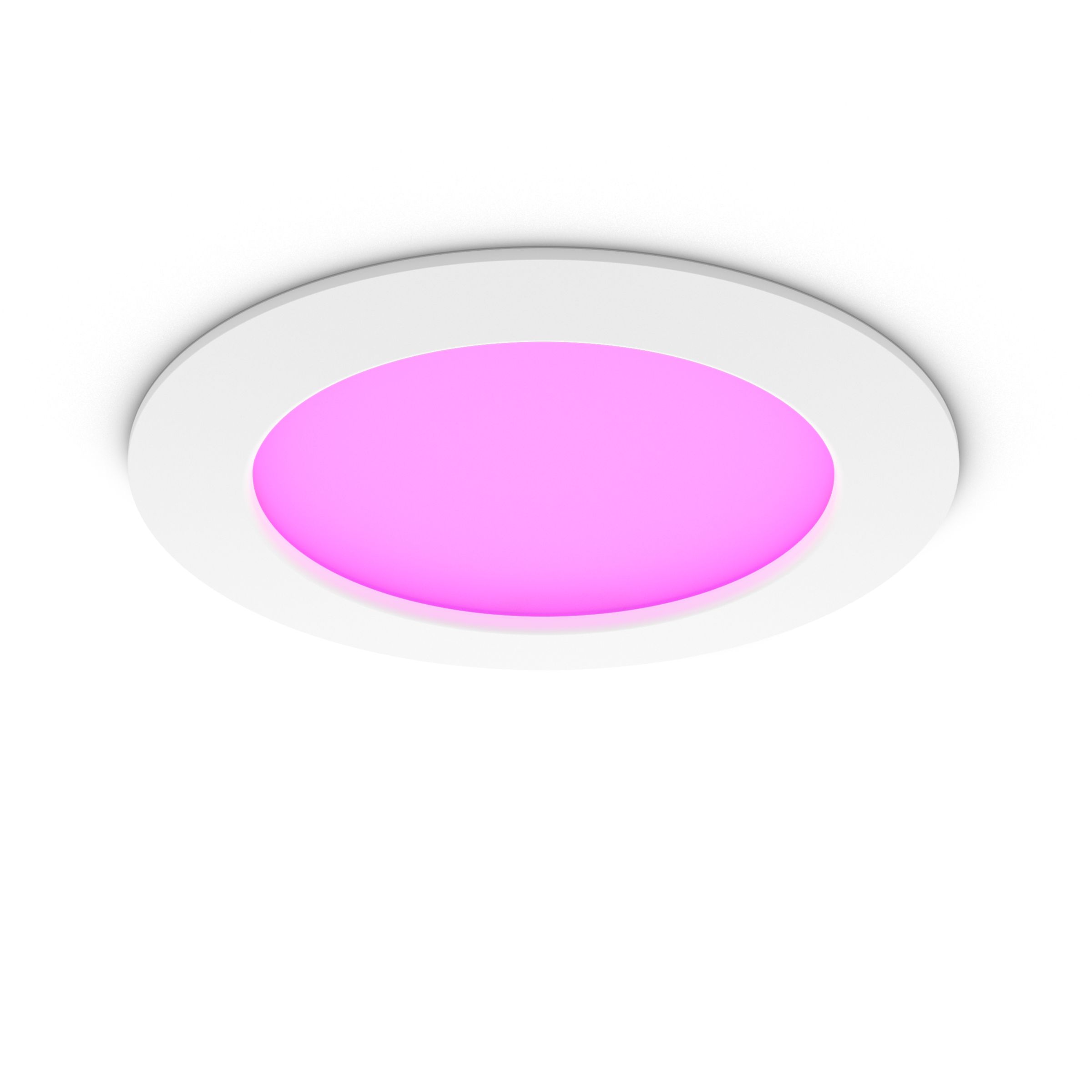 Grazie al suo profilo sottile, la luce da incasso sottile Philips Hue ti consente di aggiungere un'illuminazione da incasso a qualsiasi stanza della tua casa, ad esempio nei controsoffitti. L'angolo del fascio largo e l'elevata emissione in lumen ti consentono di illuminare spazi ancora più ampi.