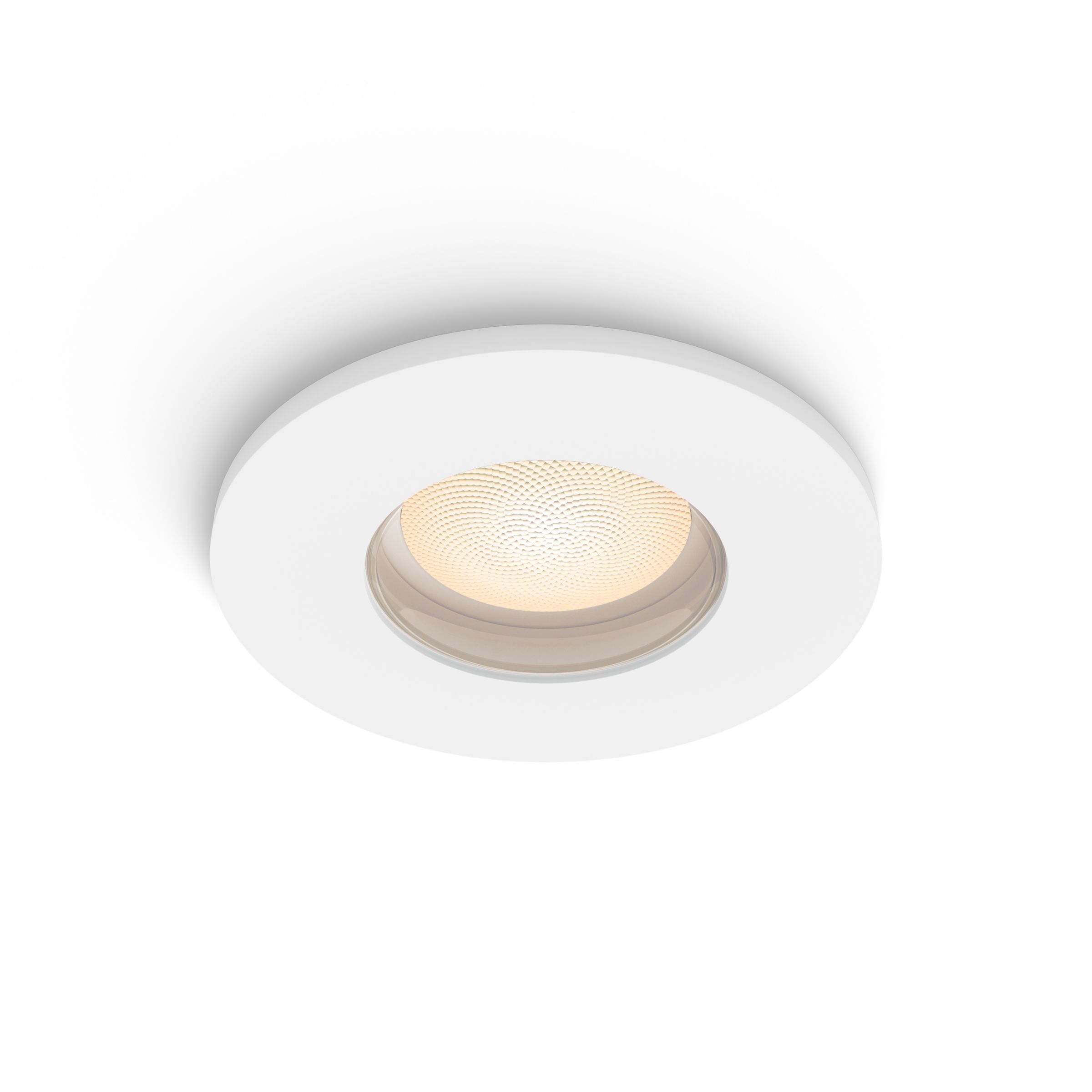 Deze witte inbouwdownlight met IP44-classificatie en een slank ontwerp is speciaal gemaakt voor badkamers en geeft warm- tot koelwit licht, perfect voor je ochtend- en avondroutines.