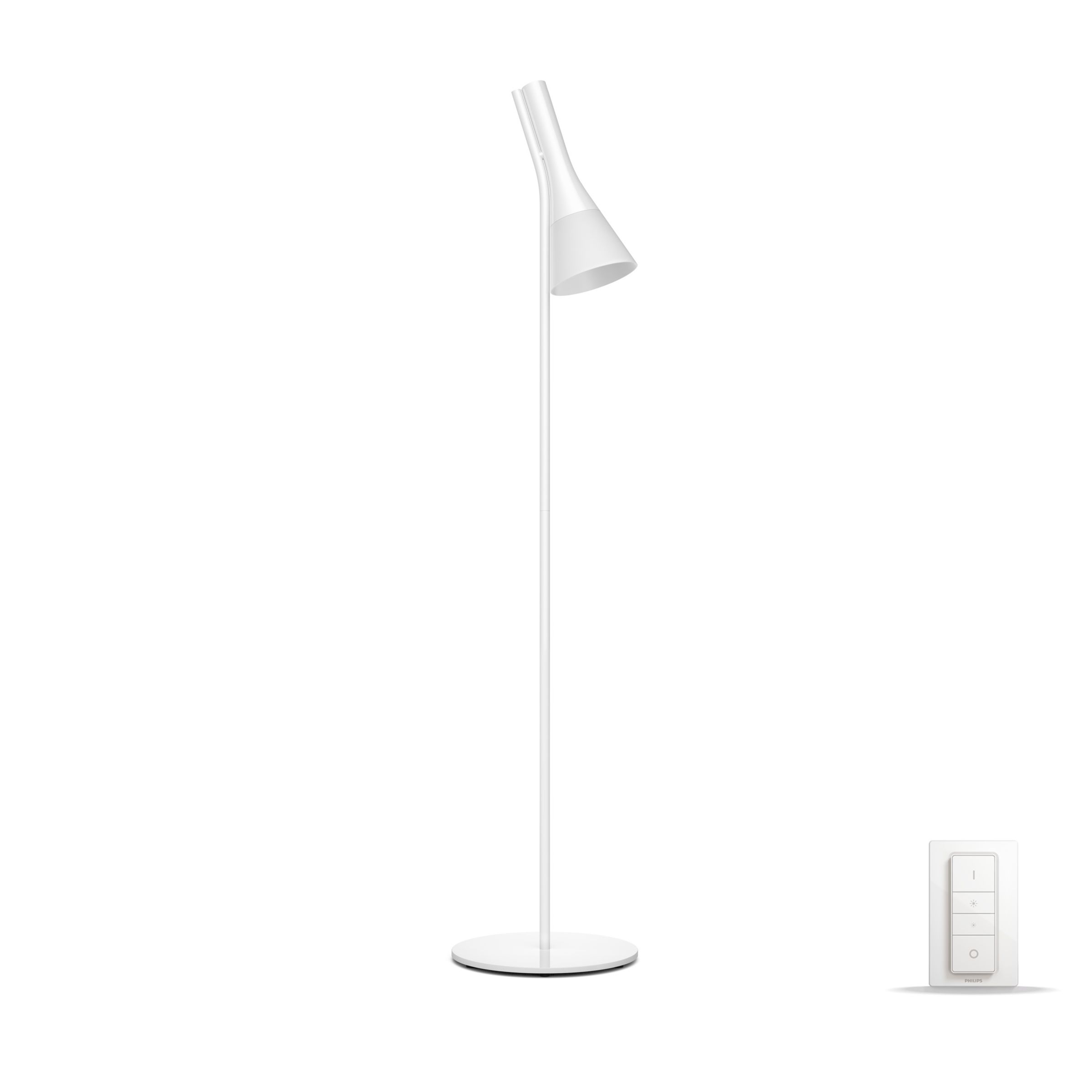 Ligue o candeeiro de pé alto Philips Hue White Ambiance Explore ao seu sistema Philips Hue e desfrute de luz branca natural que o ajuda a acordar, ter energia, concentrar-se, ler e descontrair. Concebido para direcionar a luz para onde mais precisa.